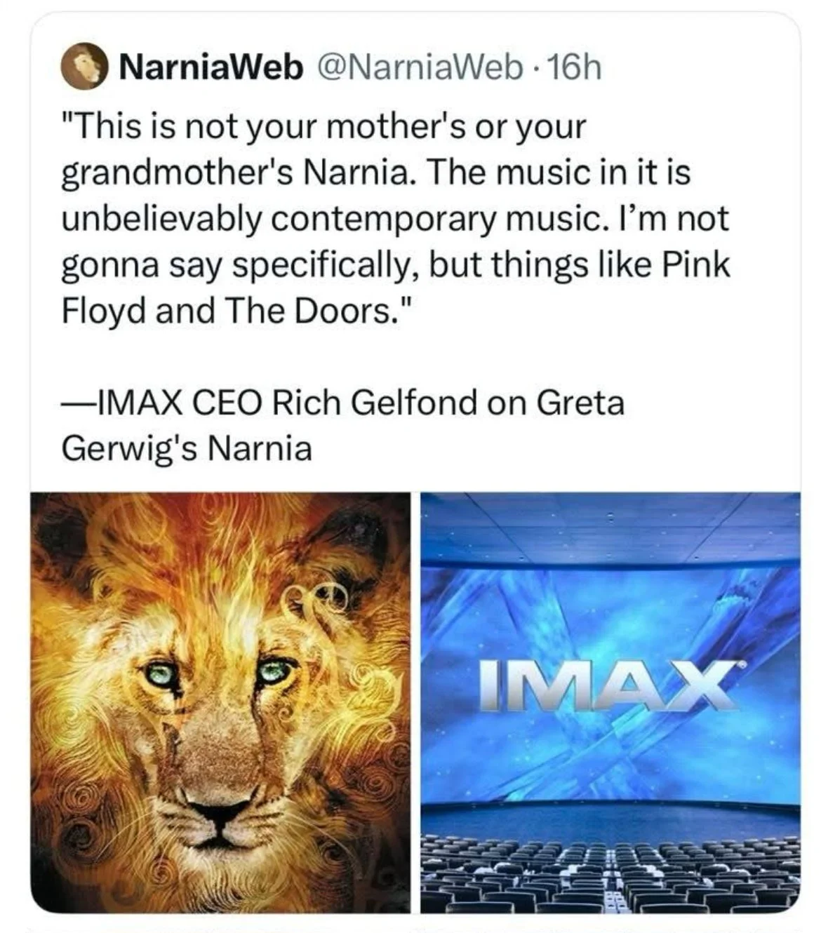 After I wrote the post above I was making dinner, picked up my phone and thanks to the algorithm (we all love and hate) I saw another post about this new Narnia movie, and while I can’t find the original post. The actor voicing the role of Aslan is reportedly Meryl Streep, an actress.